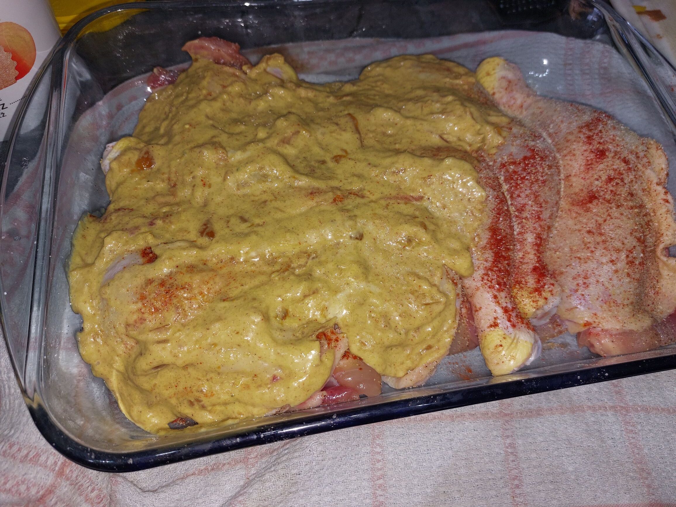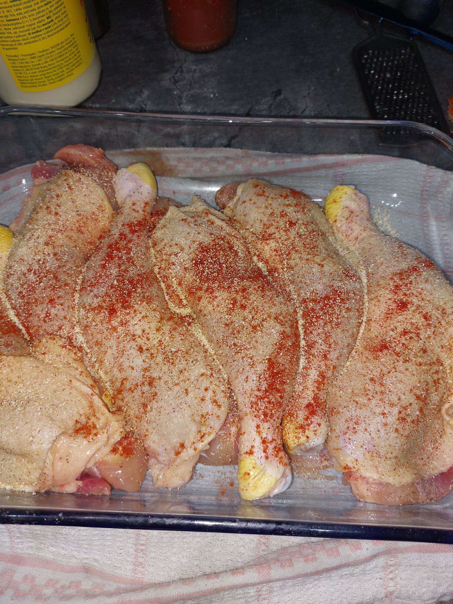 Piščanca začini in ga položi v pekač. če imaš pri roki lahko spodaj položiš mlado čebulo