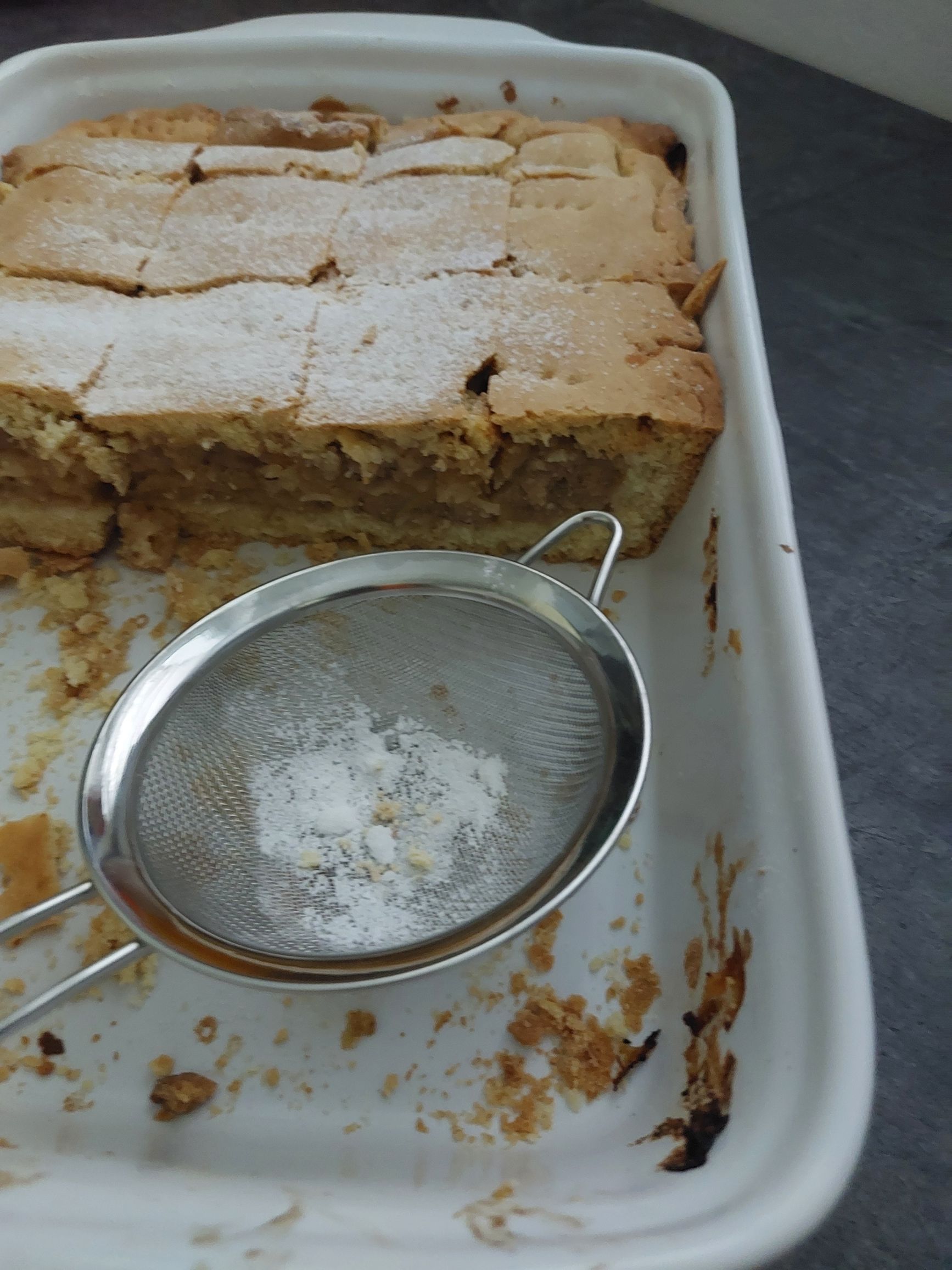 narežemo na poljubne kose in potresemo s sladkorjem v prahu in po želji dodamo kepico vanilijevega sladoleda
