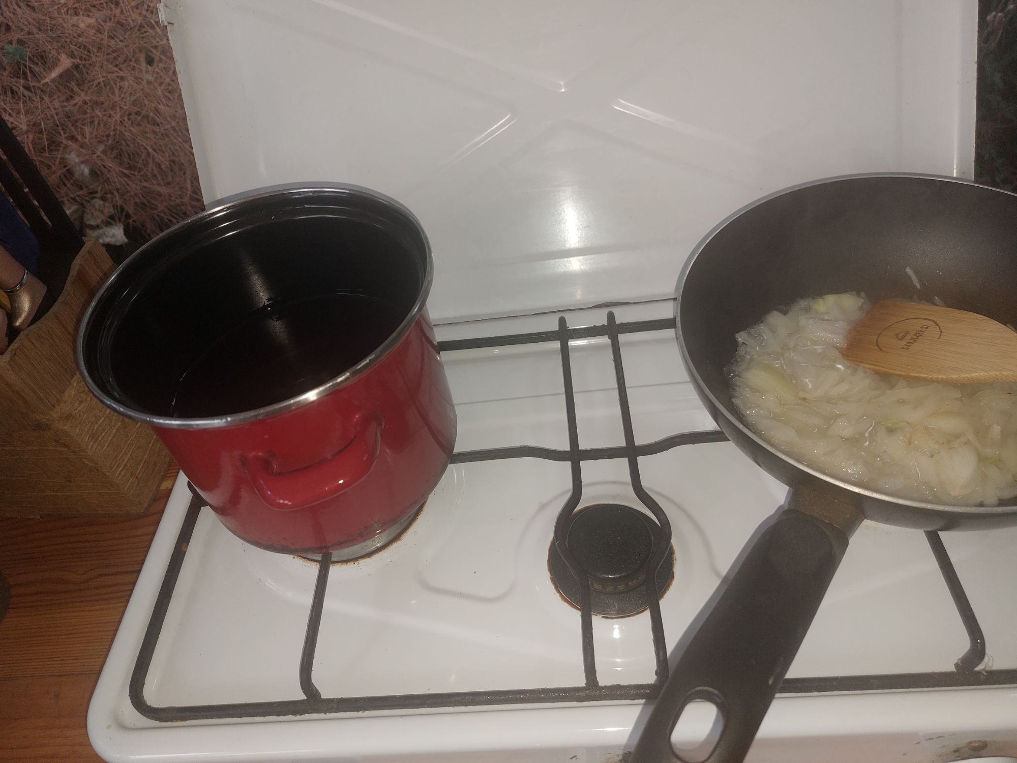 na masti ali olju pražimo čebulo, solimo, popramo, zalijemo z vinom, povremo