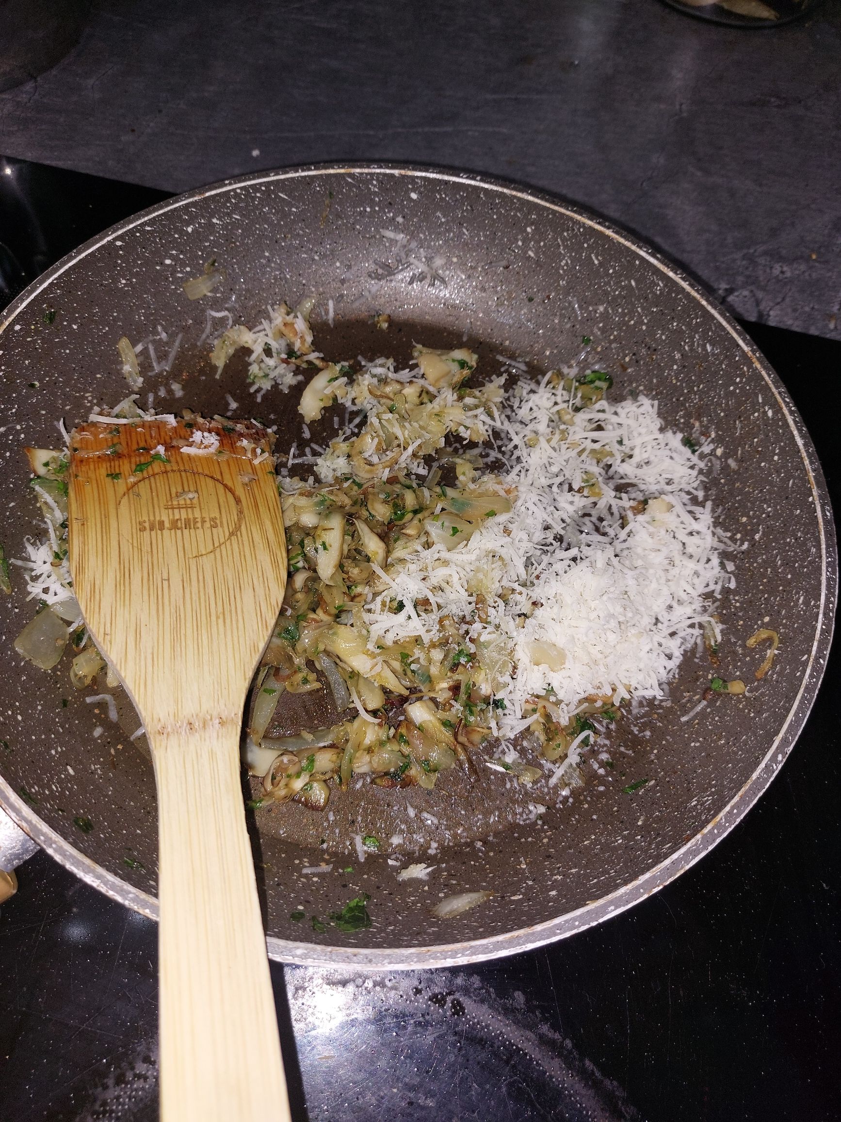 1. dodamo še parmezan in po potrebi malo vode ali jušne osnove
