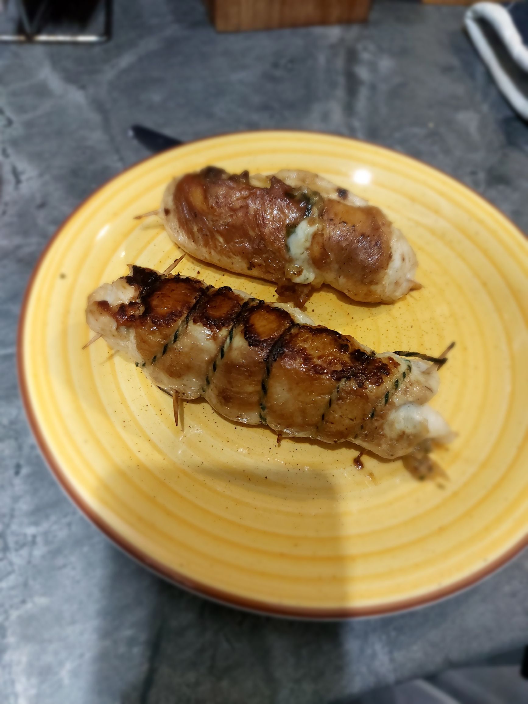 1. vse skupaj zrolamo v rolado ali pa samo prepognemo, da nastanejo žepki, kar nam je ljubše, pazimo le da spoje dobro zapremo z zobotrebci ali vrvico, da nam sirček ne pobegne 😯