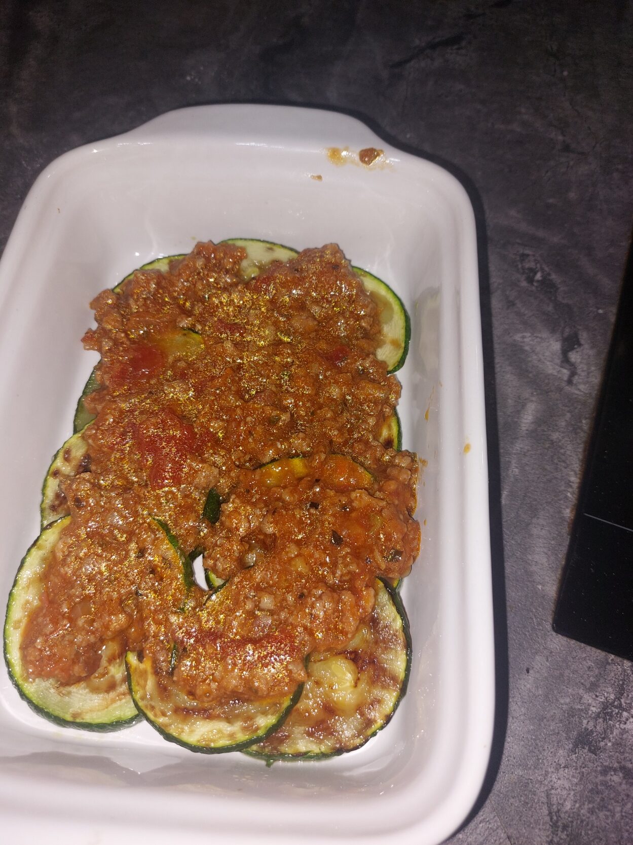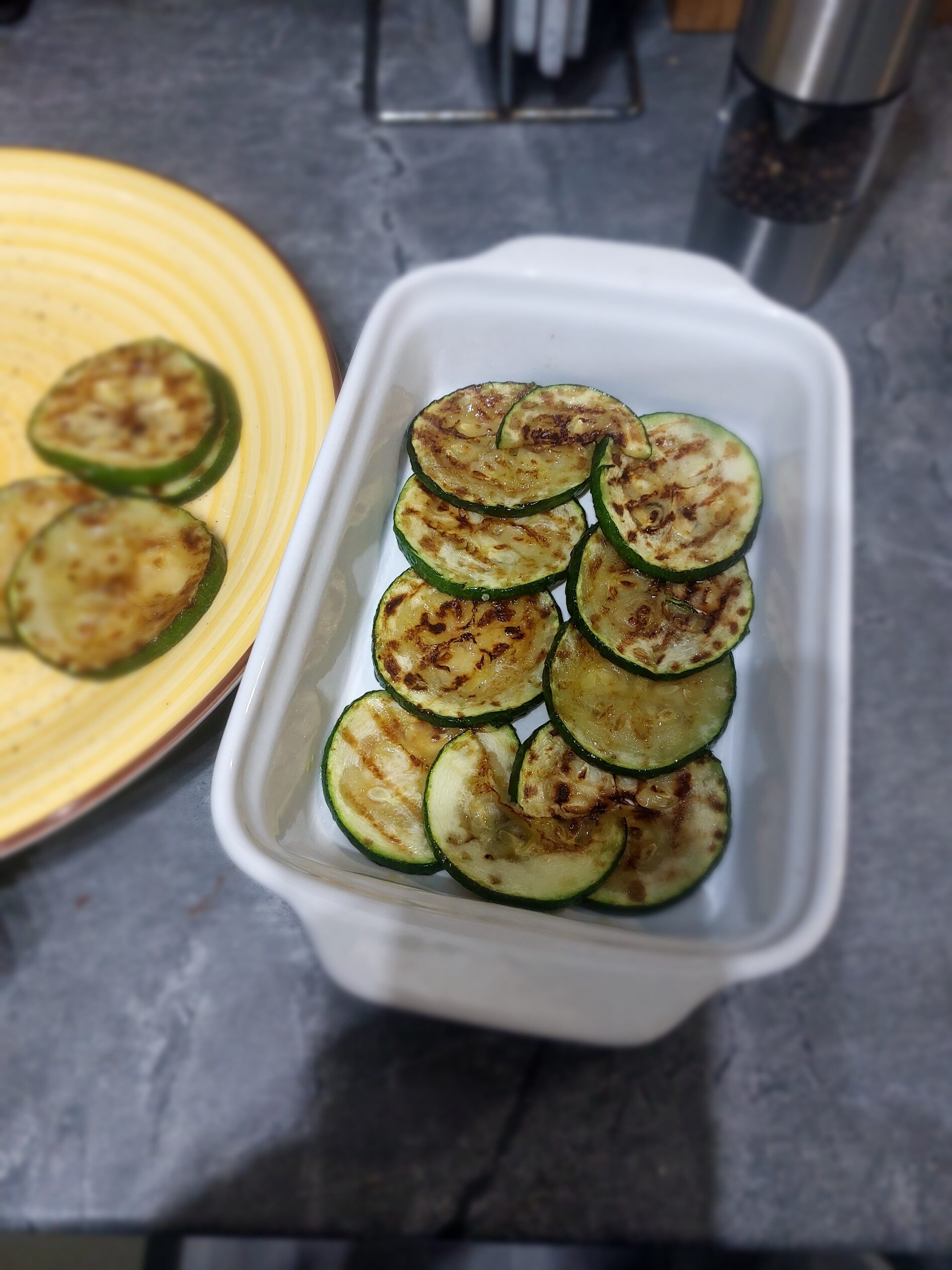 dodamo ragu, bešamel, bučke, ragu sir ali bešamel, bučke... in zaključimo z bučkami na katere damo še plast bešamela in potresemo z naribanim sirom