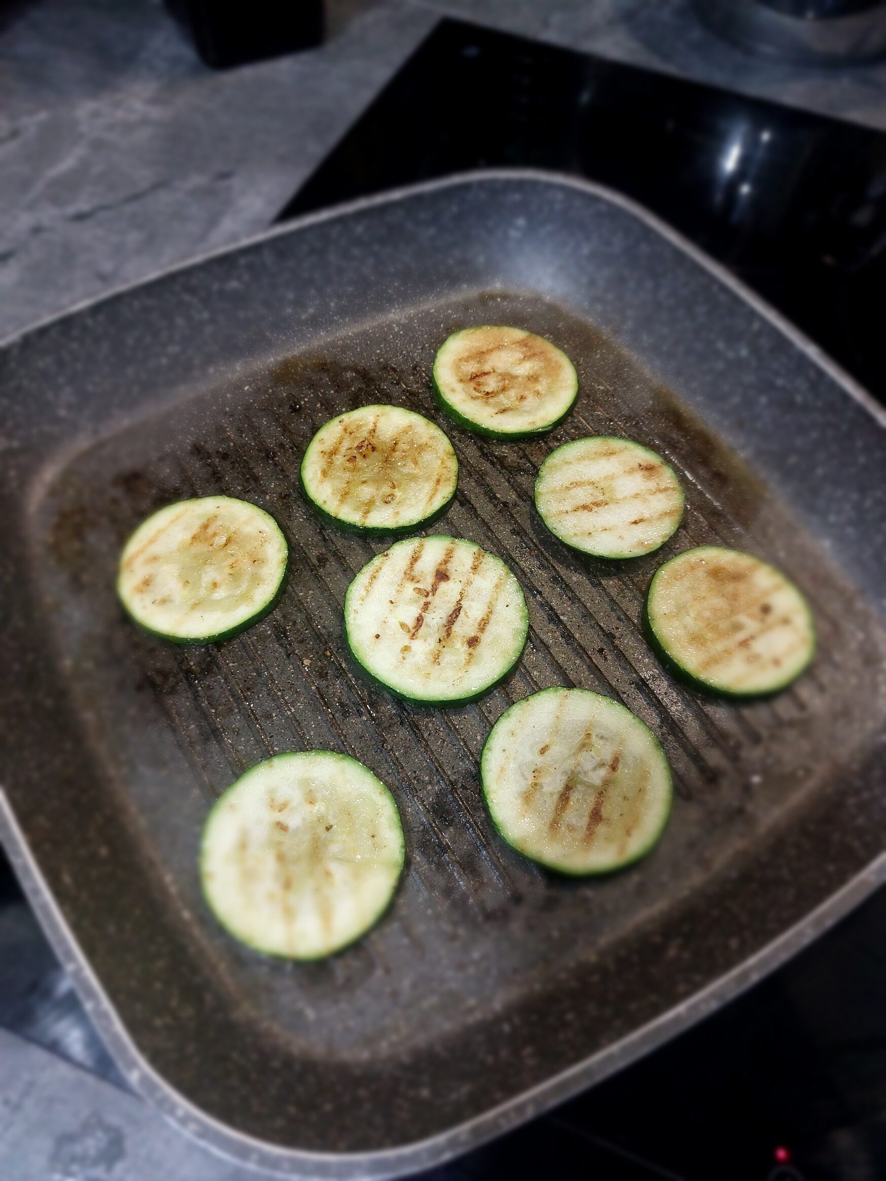 bučke ali jajčevce solimo in na malo olivnega olja popečemo,