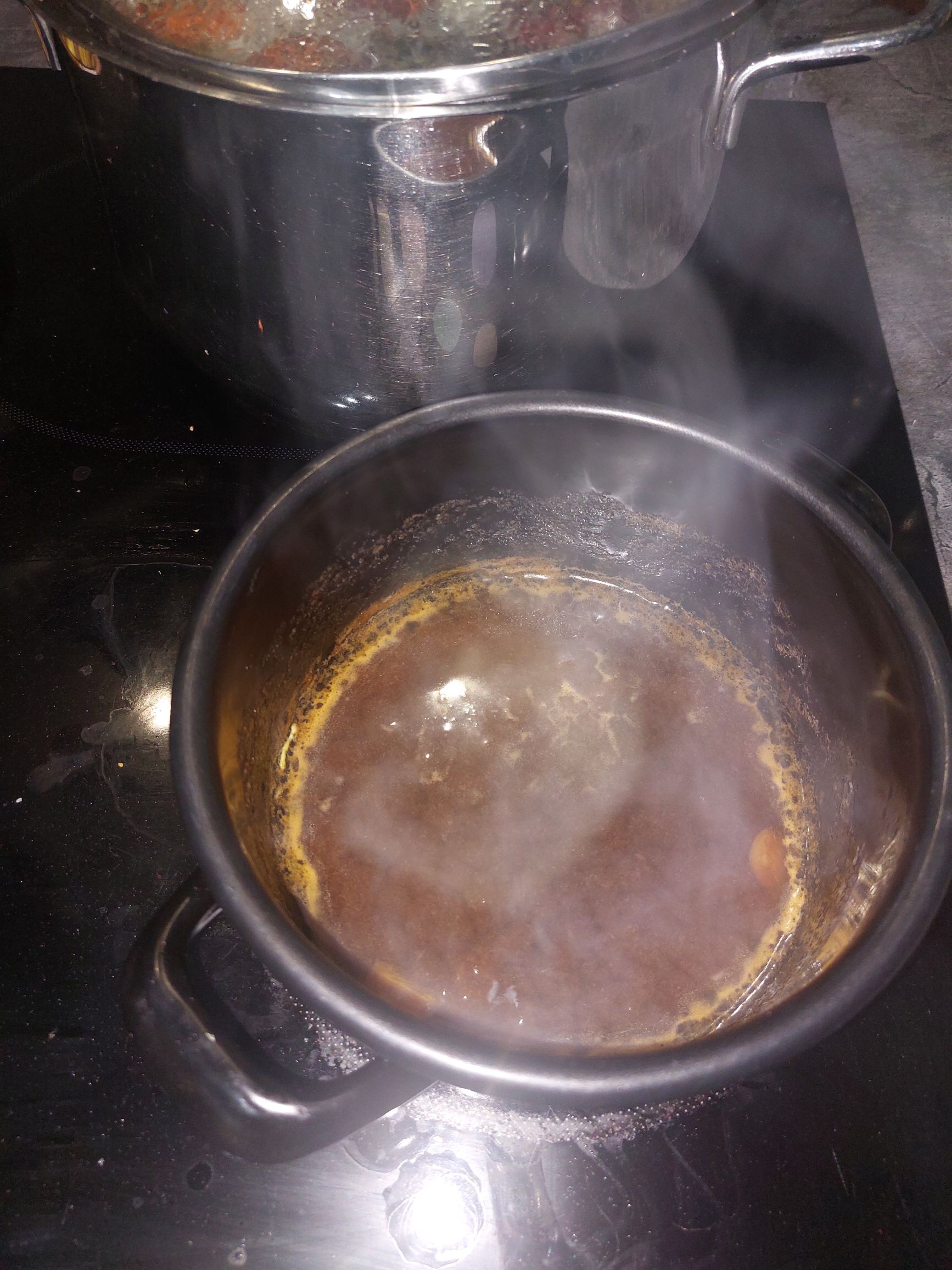 1. enako kot slow cooker, daš kuhati pokrito na ploščo, na nizkem ognju, komaj brbotajoče 3-4 ure, odvisno od velikosti beder in koliko razpadajoče meso hočeš imeti