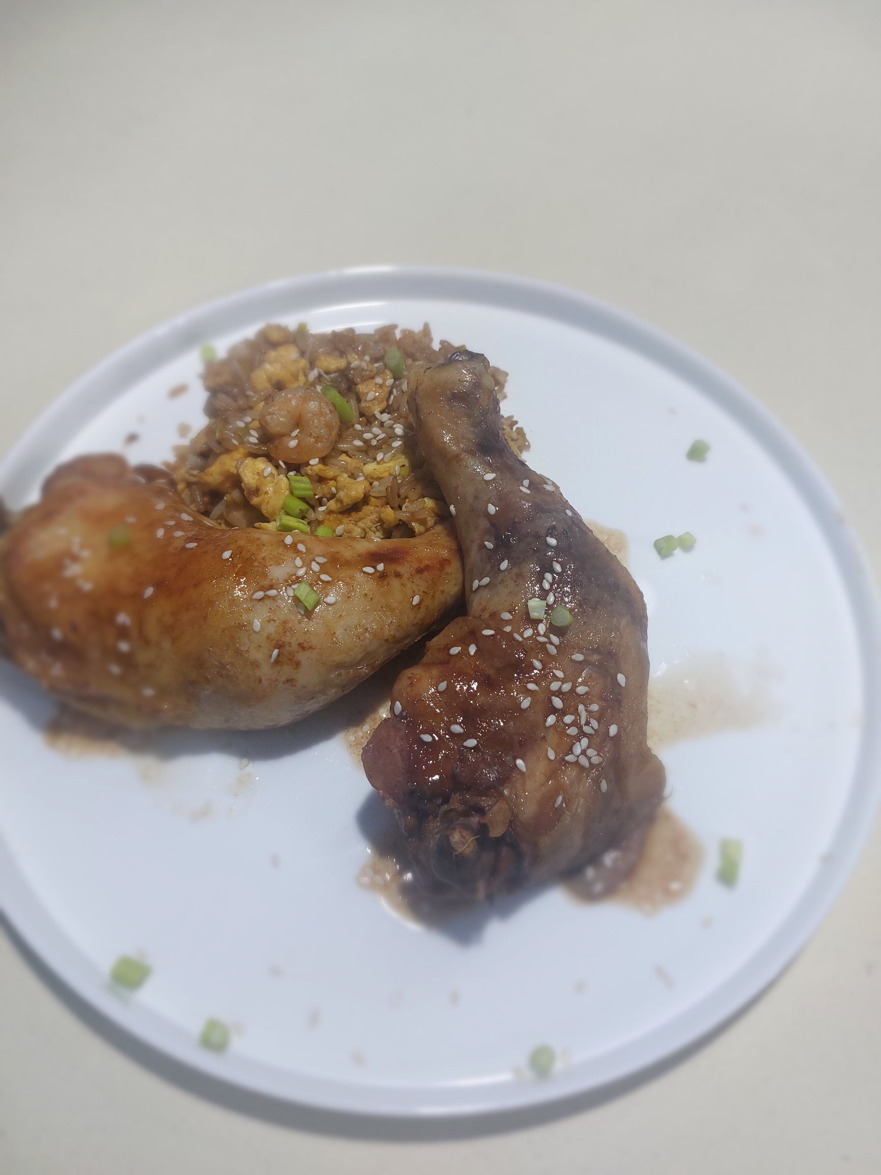 1. za riž uporabi servirni obroček ali skodelico poleg položiš bedra, potreseš s sezamom in mlado čebulo ali drobnjakom