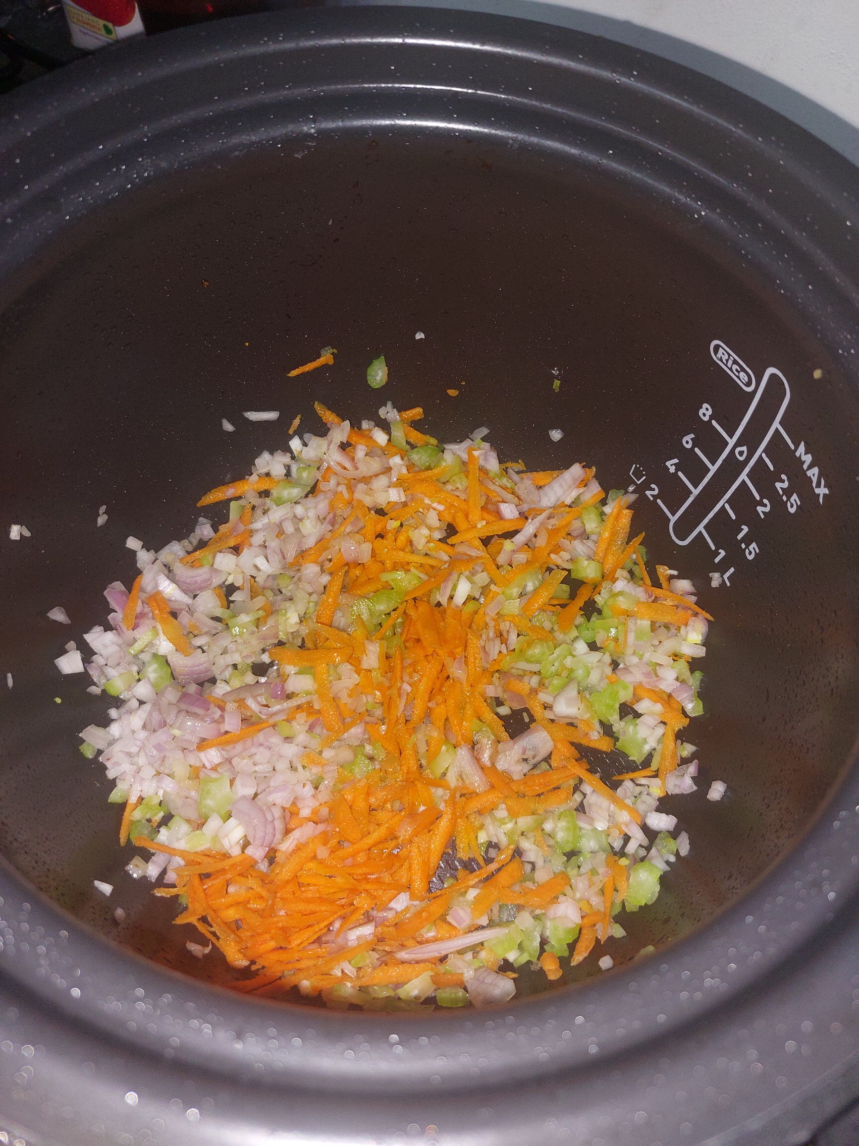 cooker damo na praženje (stirfry), segrejemo olje in maslo, vsak kos posebej zapečemo na obeh straneh, da dobijo lepo rjavo skorijco, pobereš ven in