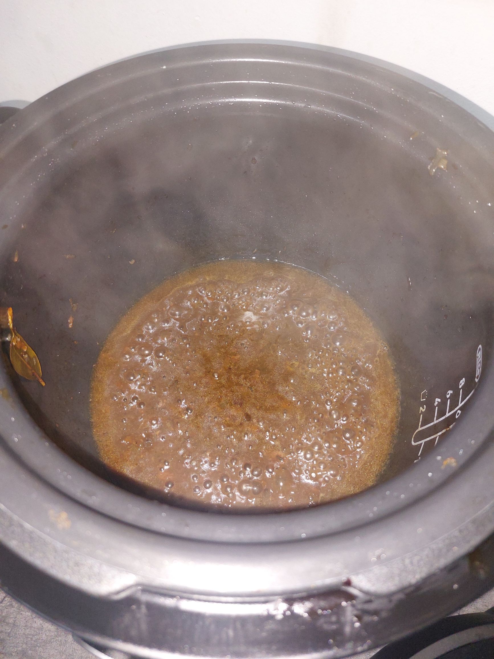 prestavimo na počasno kuhanje, temperaturo nastavimo na 85°C, čas na 4 ure, zapremo pokrov, ne mešamo