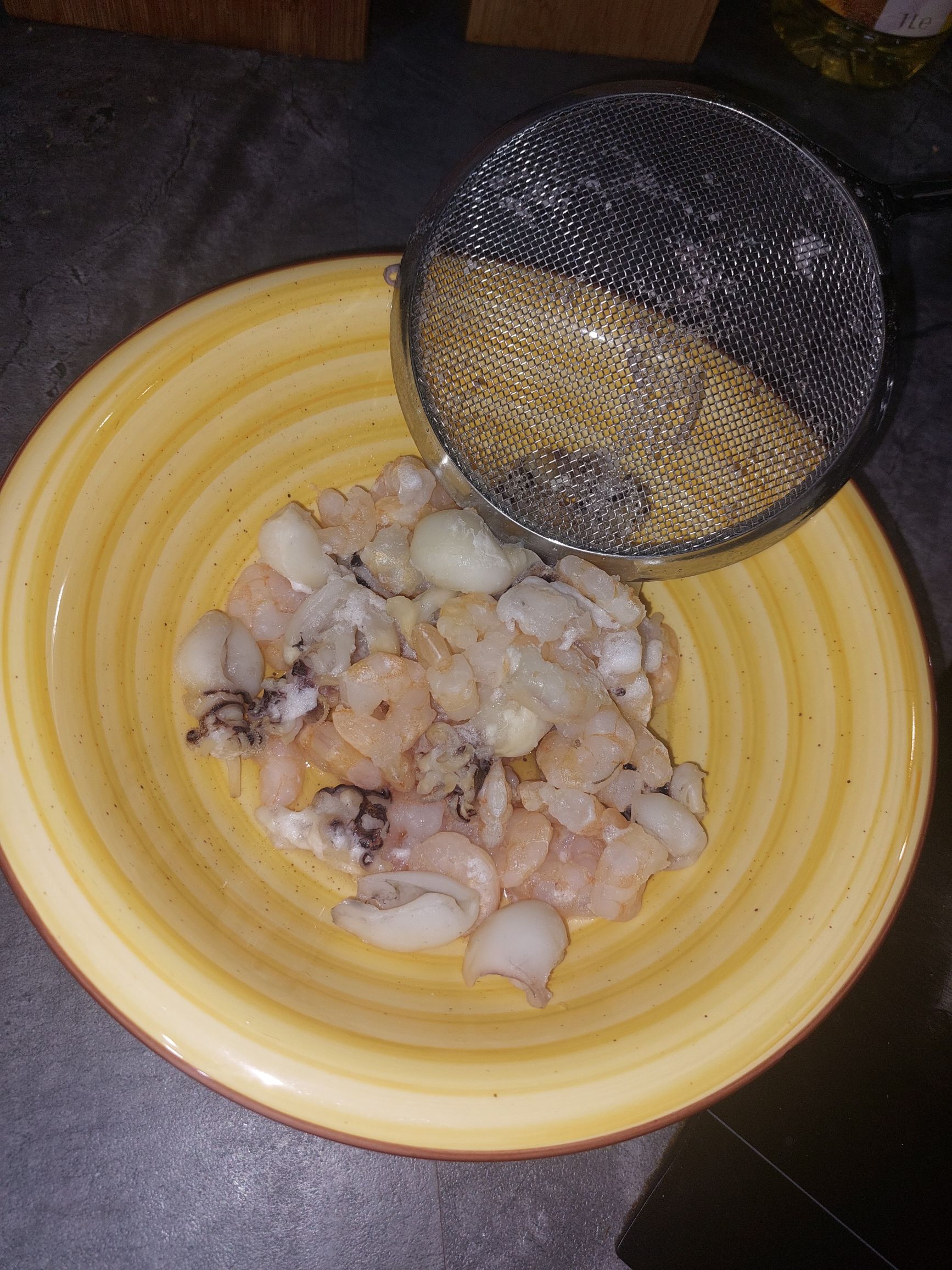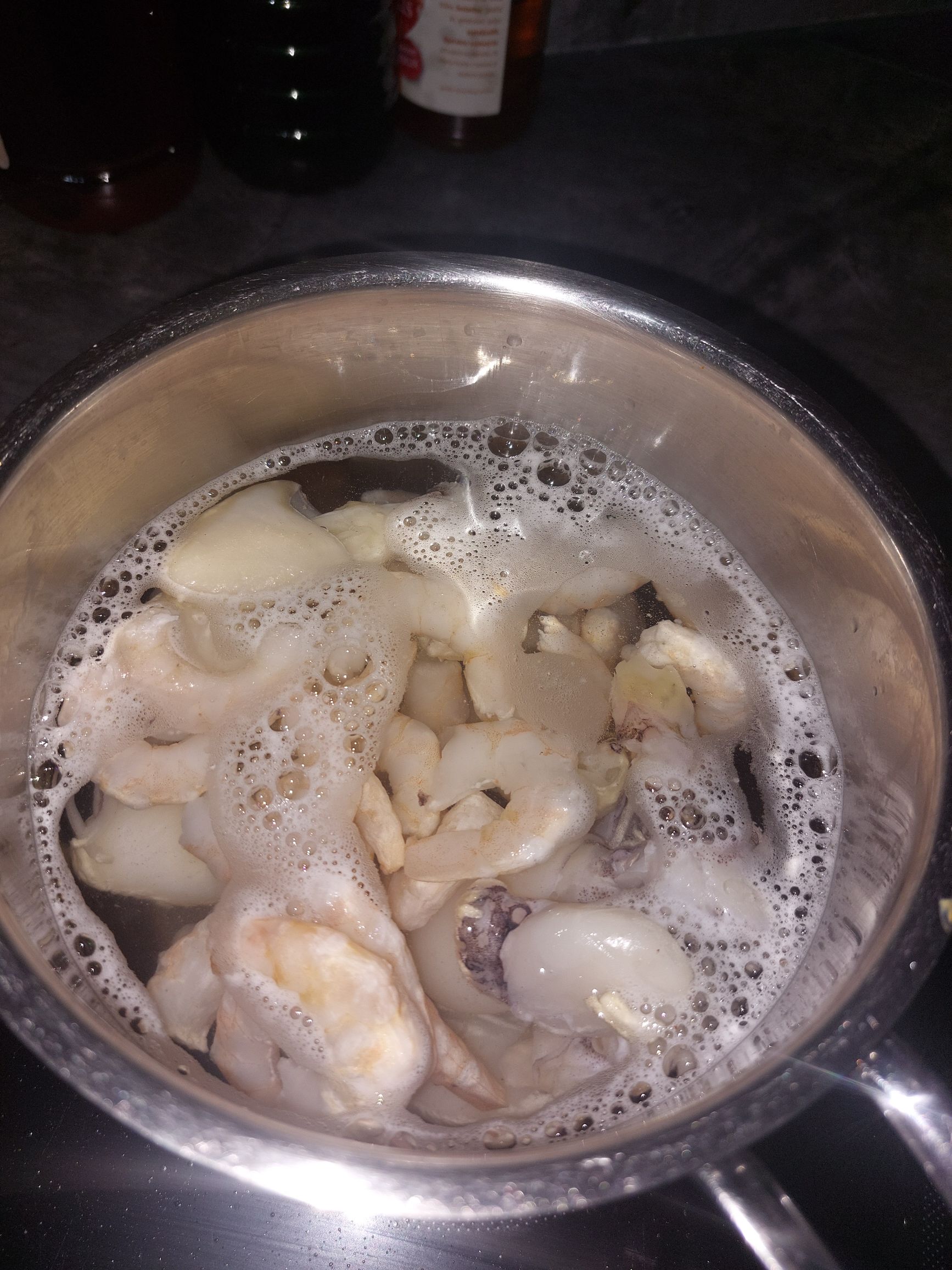 če imamo kozice in sipe zamrznjene, jih hitro pokuhamo