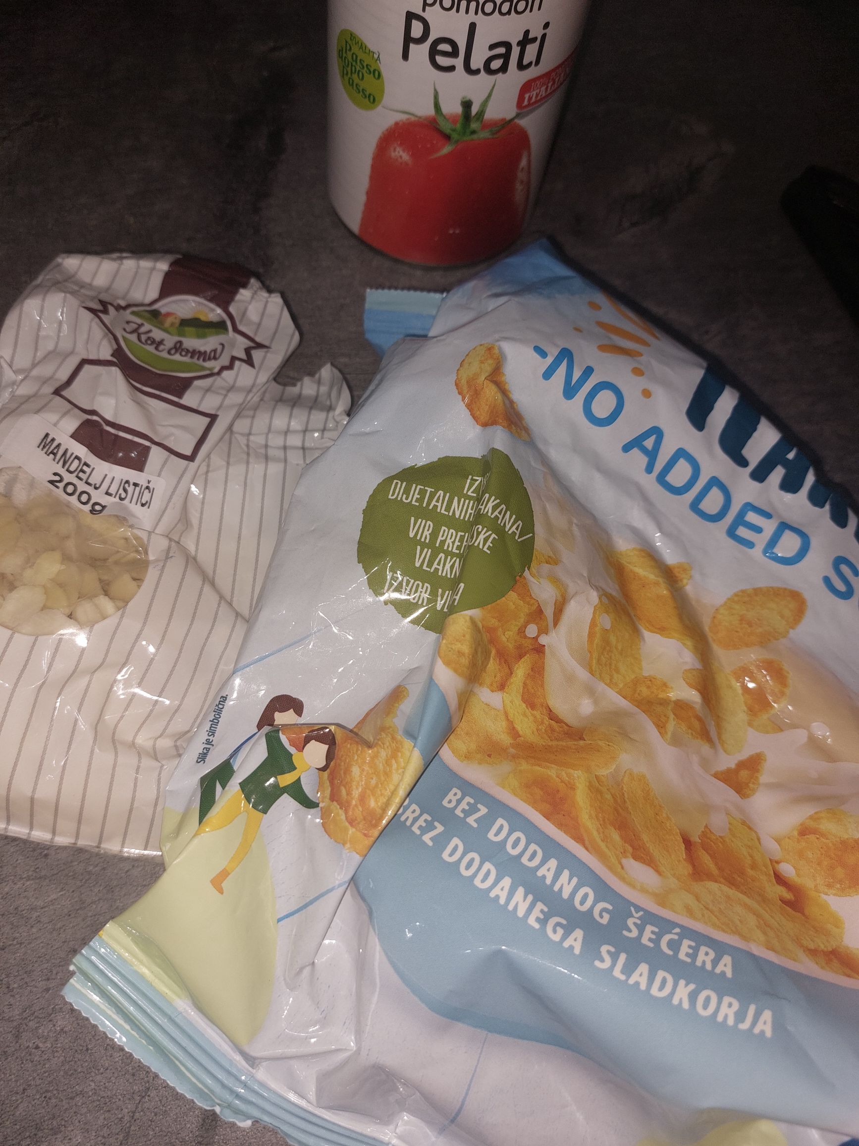 koruzne kosmiče in mandlje stresemo v vrečko