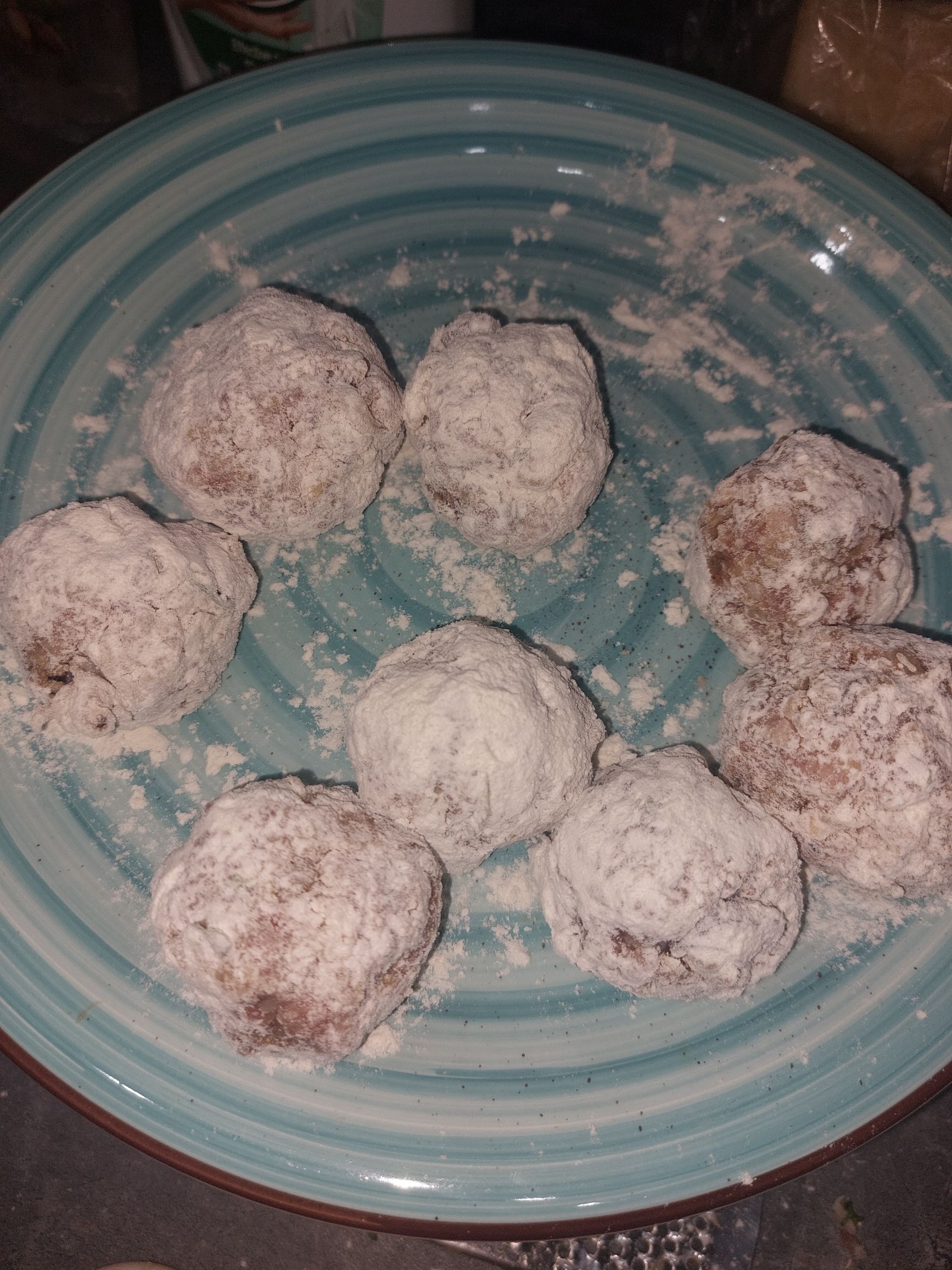 iz mase naredimo žogice poljubne velikosti pač odvisno od tega s čim jih bomo postregli in jih povaljamo v moki