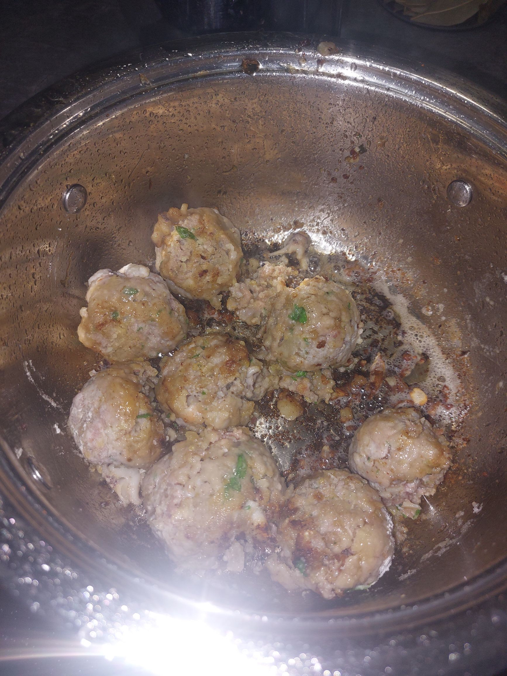 žogice z vseh strani lepo zapečemo prav tako sipe in preložimo v omako, ki smo jo vmes že pripravili