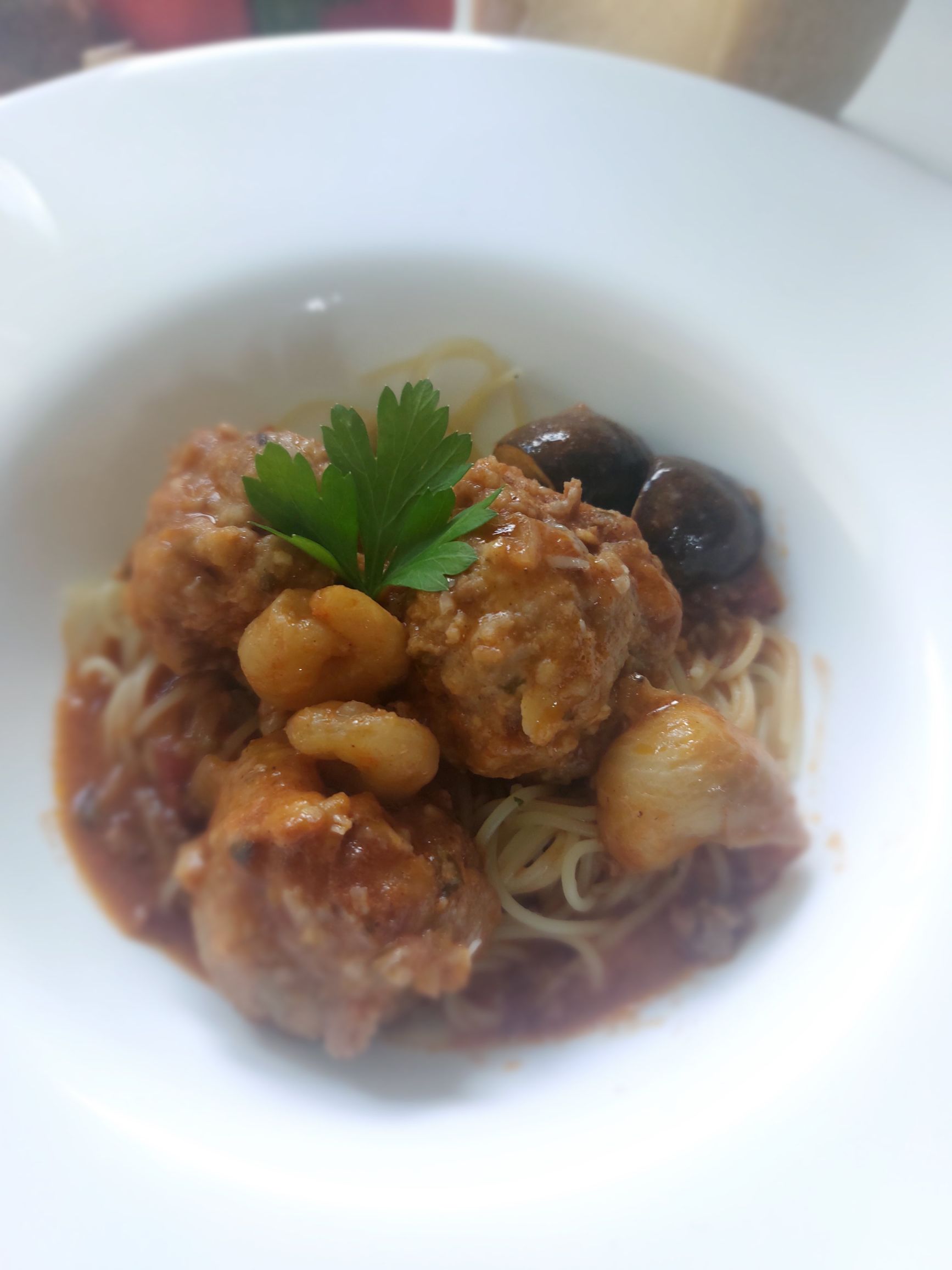 »Mandonguilles amb sepia« je tradicionalna katalonska jed, ki združuje meso in morske sadeže ter predstavlja slog kuhanja »Mar i Muntanya«