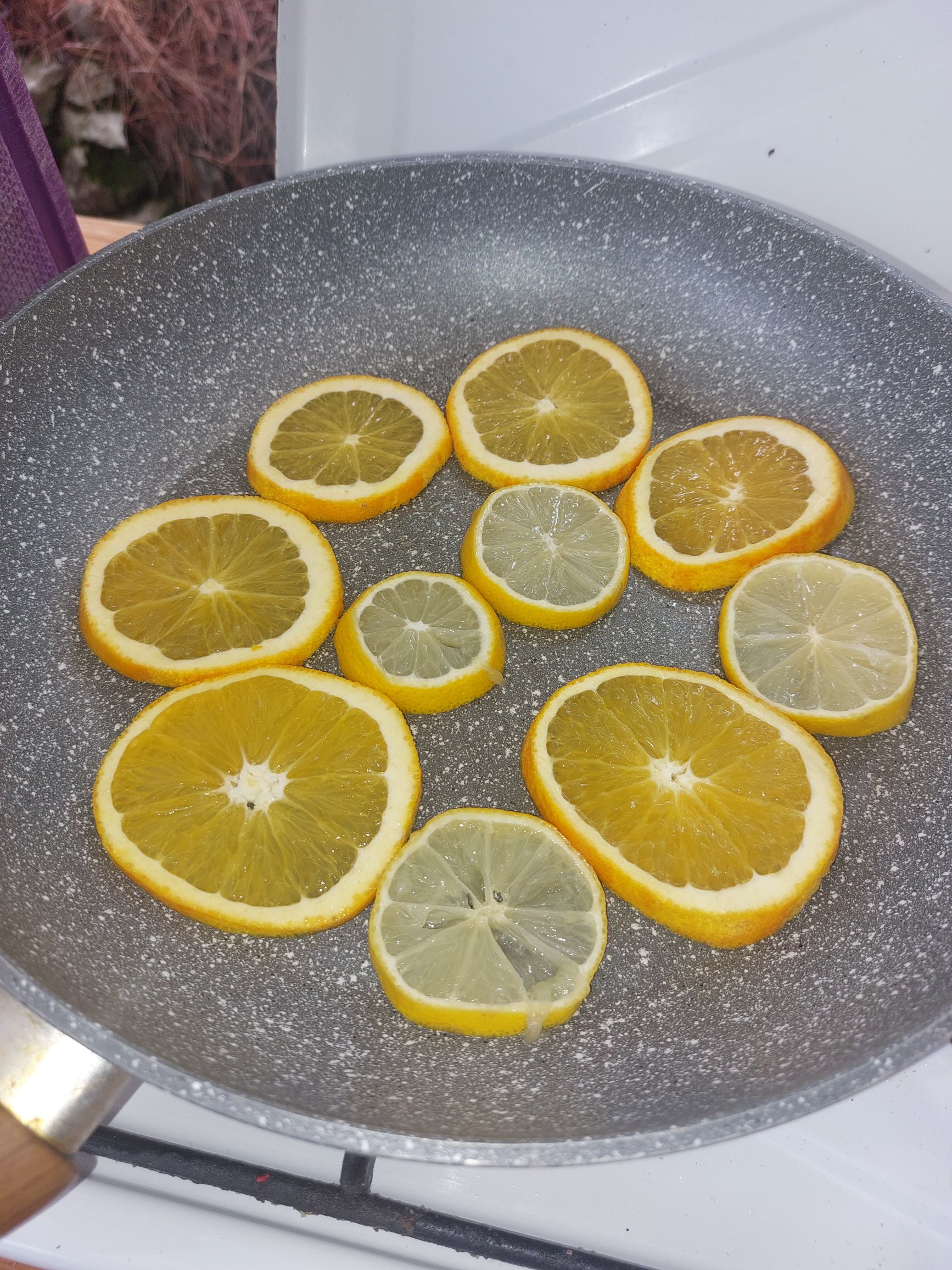 1. pomaranče in limone dobro operemo, narežemo na kolobarje in popečemo