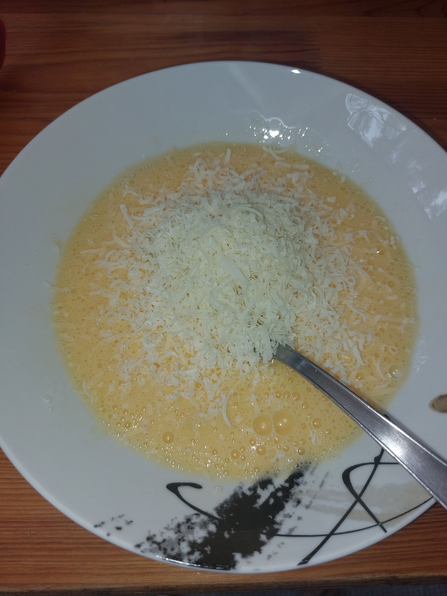 1. jajca stepemo in jim dodamo polovico parmezana ter smetano