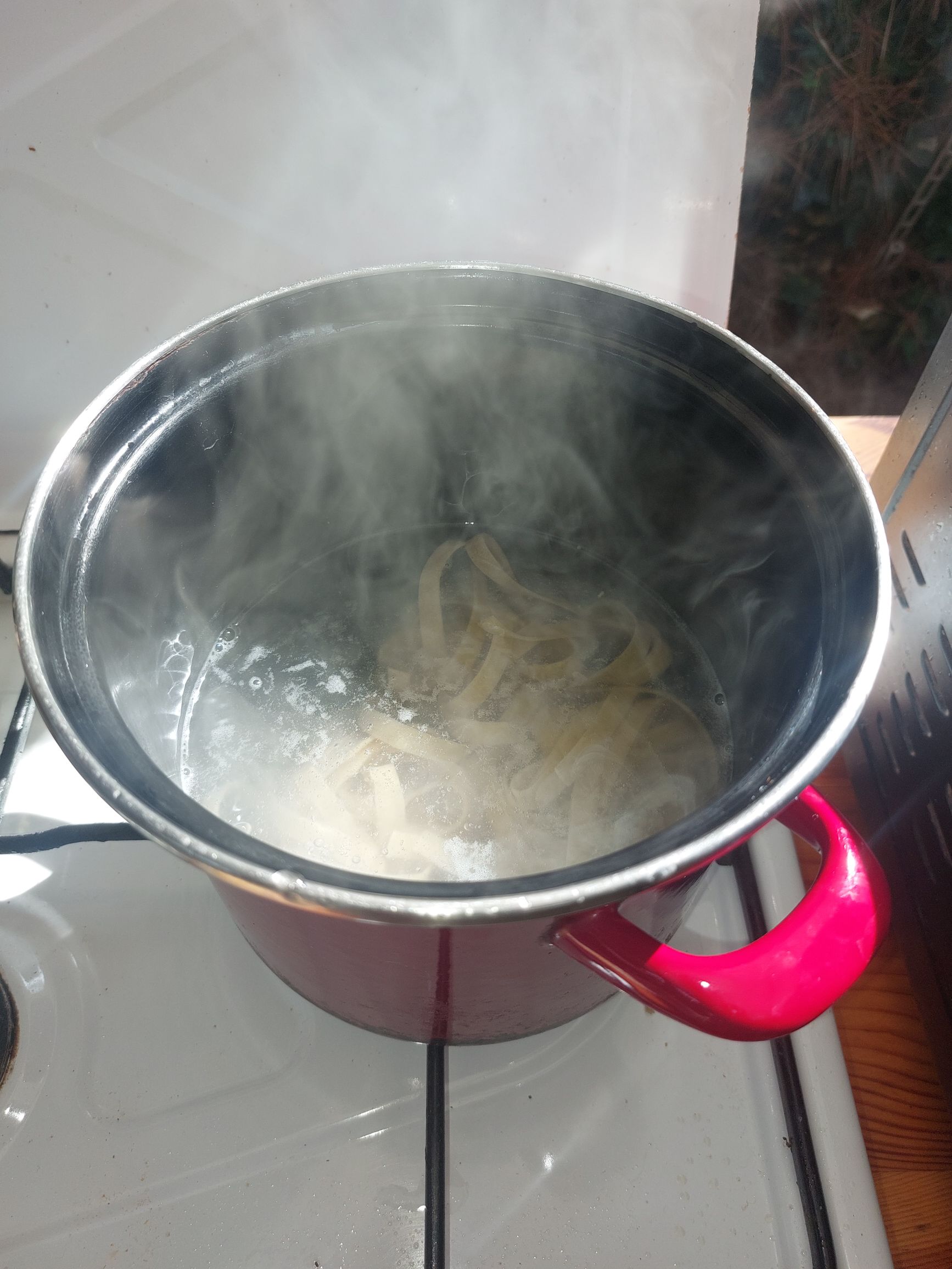 2. pristavimo vodo za testenine in jih skuhamo po navodilih